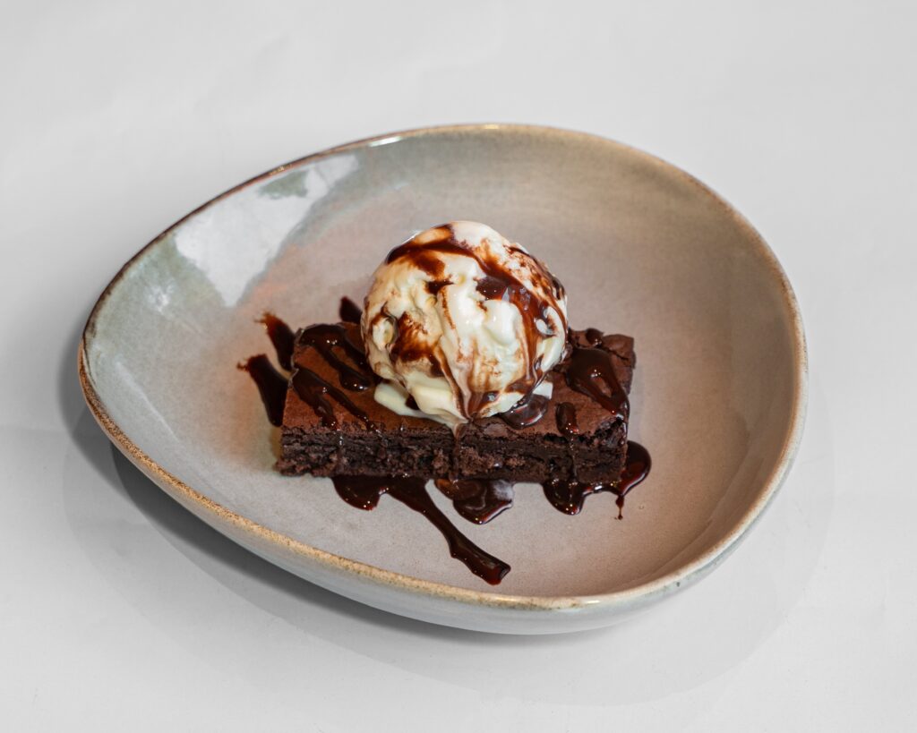 New Mexico Smothered Brownie rich choclate served with Vanilla Icecream and choclate sauce on top