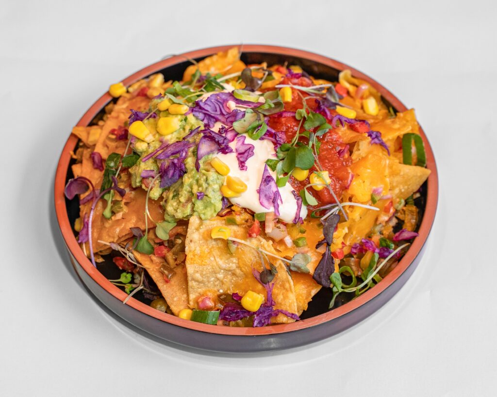 Tortilla crisps, smoked cheese blend, house- made guacamole, Pico de Gallo, sour cream, salsa & jalapeños